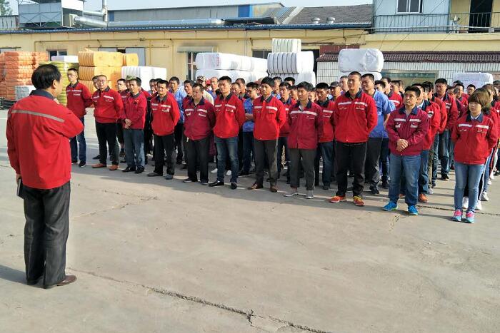 2018年5月14日星期一,华雨林无纺布喷胶棉分厂顺利召开周一大朝会,会上强调了安全生产的重要性,以及减少员工安全事故发生率的决心,使广大员工真正做到快乐工作,安全回家。
